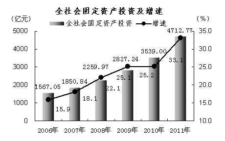 按三次产业划分,第一产业投资238.06亿元,增长12.6%;第二产业投资2454.14亿元,增长47.2%;第三产业投资2020.57亿元,增 长21.6%。在第二产业中,工业投资2377.10亿元,增长46.2%,其中,制造业投资1152.02亿元,增长85.7%。