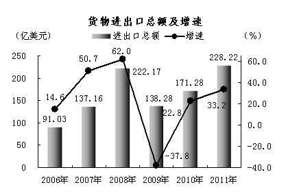 2011年货物进出口总额及增速 |
