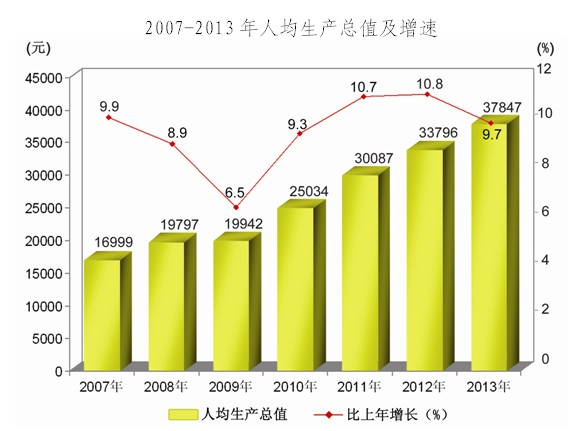 按常住人口计算,人均地区生产总值37847元,增长9.7%。按当年平均汇率折合6174美元。