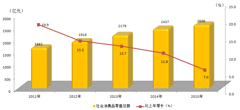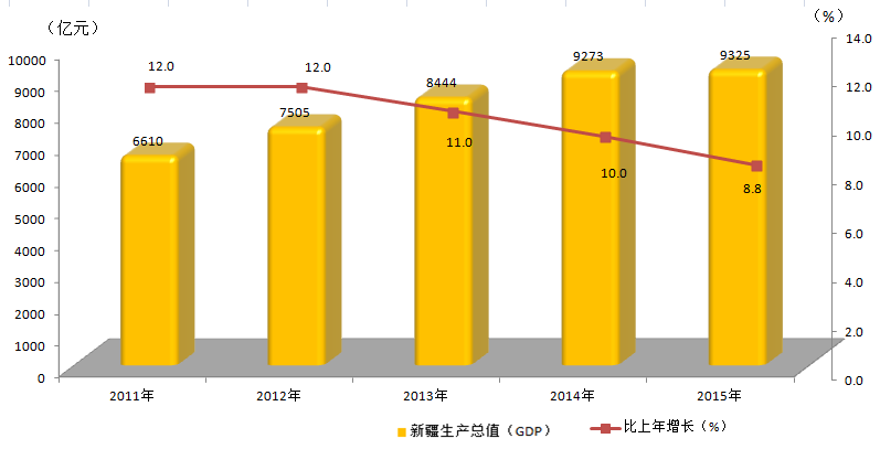 2011-2015年生产总值(GDP)及增速