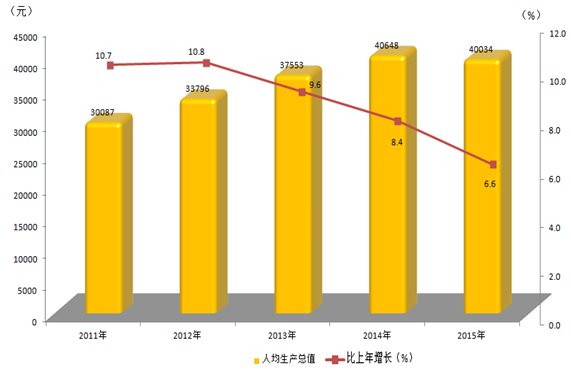 2011-2015年人均生产总值及增速
