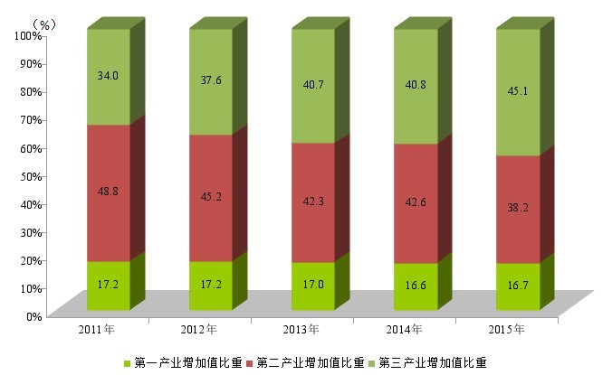 2011-2015年三次产业增加值占地区生产总值比重