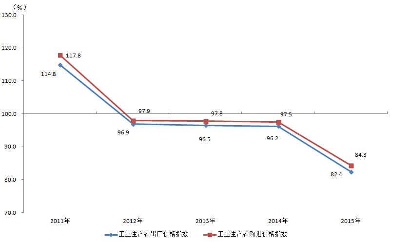 2011-2015年工业生产者出厂价格、购进价格指数