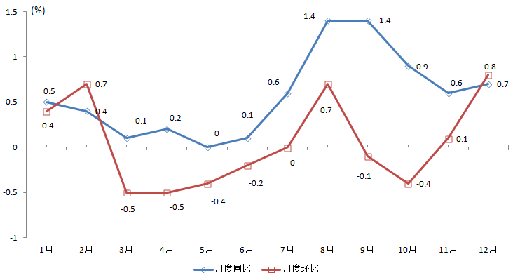 2015年居民消费价格月度变化情况