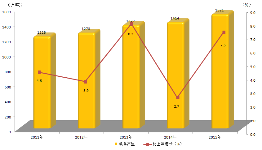 2011-2015年粮食产量及增速