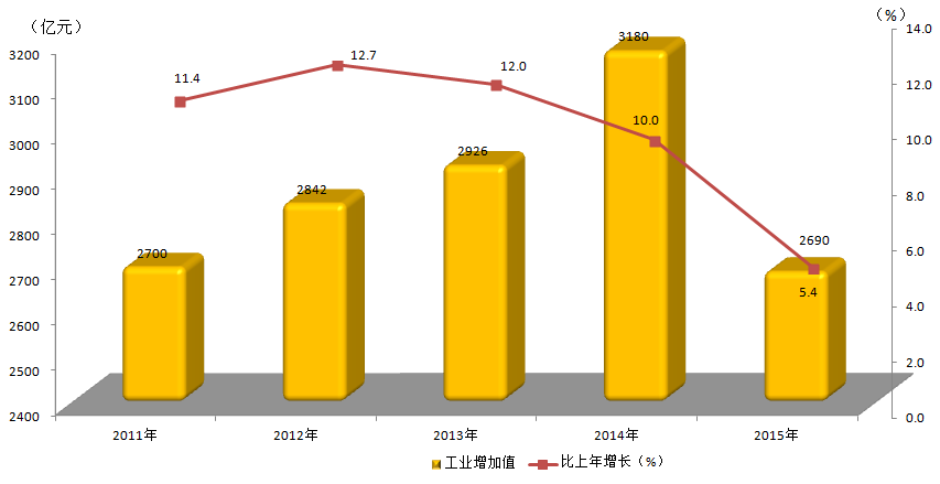 2011-2015年工业增加值及其增长速度