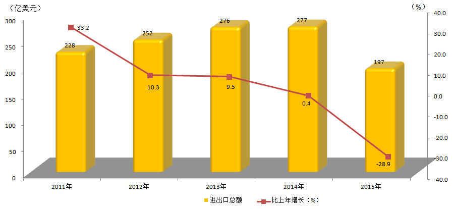 表4 2015年货物进出口总额及变动情况