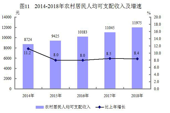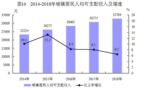 全年城乡居民人均可支配收入21500元,比上年增长7.6%,扣除价格因素,实际增长5.5%。按常住地分,城镇居民人均可支配收入32764元,比上年增长6.5%,扣除价格因素,实际增长4.6%。其中,工资性收入21953元,增长6.0%;经营净收入3414元,增长7.4%;财产净收入1434元,增长6.1%;转移净收入5963元,增长7.9%。农村居民人均可支配收入11975元,比上年增长8.4%,扣除价格因素,实际增长5.9%。其中,工资性收入2945元,增长5.3%;经营净收入6624元,增长9.7%;财产净收入235元,增长1.0%;转移净收入2170元,增长9.7%。