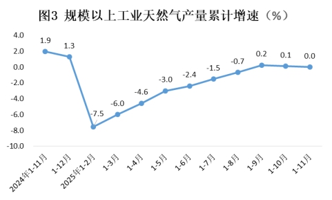 1-11月份,全疆规模以上工业企业天然气累计产量387.87亿立方米,与上年同期持平。