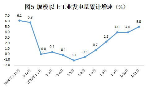 1-11月份,全疆规模以上工业企业发电量5142.01亿千瓦时,同比增长5.0%。其中,火力、风力和太阳能发电量同比分别增长0.7%、7.9%和43.0%,水力发电量同比下降0.6%。
