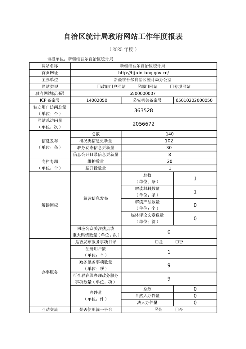 2025年自治区统计局政府网站工作年度报表